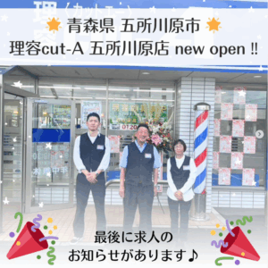 理容cut-A五所川原店 2025.08.08元ローソン様の跡地に【理容cut-A五所川原店】 がオープンいたしました✨💈 オープン記念としまして、お得なキャンペーンも ご用意しております! 採用情報はこちら 一覧に戻る